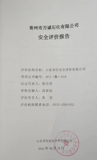 青州市万诚石化有限公司位于青州市弥河镇郝家村西侧。该加油站原名为青州市海龙加油站,2013年山东大唐油气有限公司租赁此站经营至今,因租赁合同到期山东大唐油气有限公司不再租赁经营,因此重新注册青州市万诚石化有限公司进行经营。该公司共有职工5人,其中安全管理人员1人,技术管理人员1人,经营油品为汽油和柴油。 该公司现有汽油双层罐2个,单罐容积30m3,柴油双层罐2个,单罐容积为30 m3,柴油折半计入,该加油站油罐总容积为90m3,为三级加油站。 依据《中华人民共和国安全生产法》(中华人民共和国主席令第13号,中华人民共和国主席令第88号修正)、《危险化学品安全管理条例》(中华人民共和国国务院令第645号)、《危险化学品经营许可证管理办法》(国家安全生产监督管理总局令 第55号 根据安监总局令第79号修订)的要求,危险化学品经营许可需进行安全评价,因此,青州市万诚石化有限公司委托山东oety欧亿体育安全评价有限公司进行经营危险化学品安全评价。 接受委托后,山东oety欧亿体育安全评价有限公司成立评价组,在进行资料与标准收集、现场调研、项目资料分析、危险与有害因素分析的基础上,依据《安全评价通则》(AQ8001-2007)、《山东省加油站安全评价导则》(鲁安监发〔2006〕114号),通过对该加油站安全管理、站址选择及总平面布置、加油工艺及设施、其他设施等方面的审查,选择相应的评价方法对其危险、有害因素进行辨识和评价,编写完成了《青州市万诚石化有限公司安全评价报告》。 |