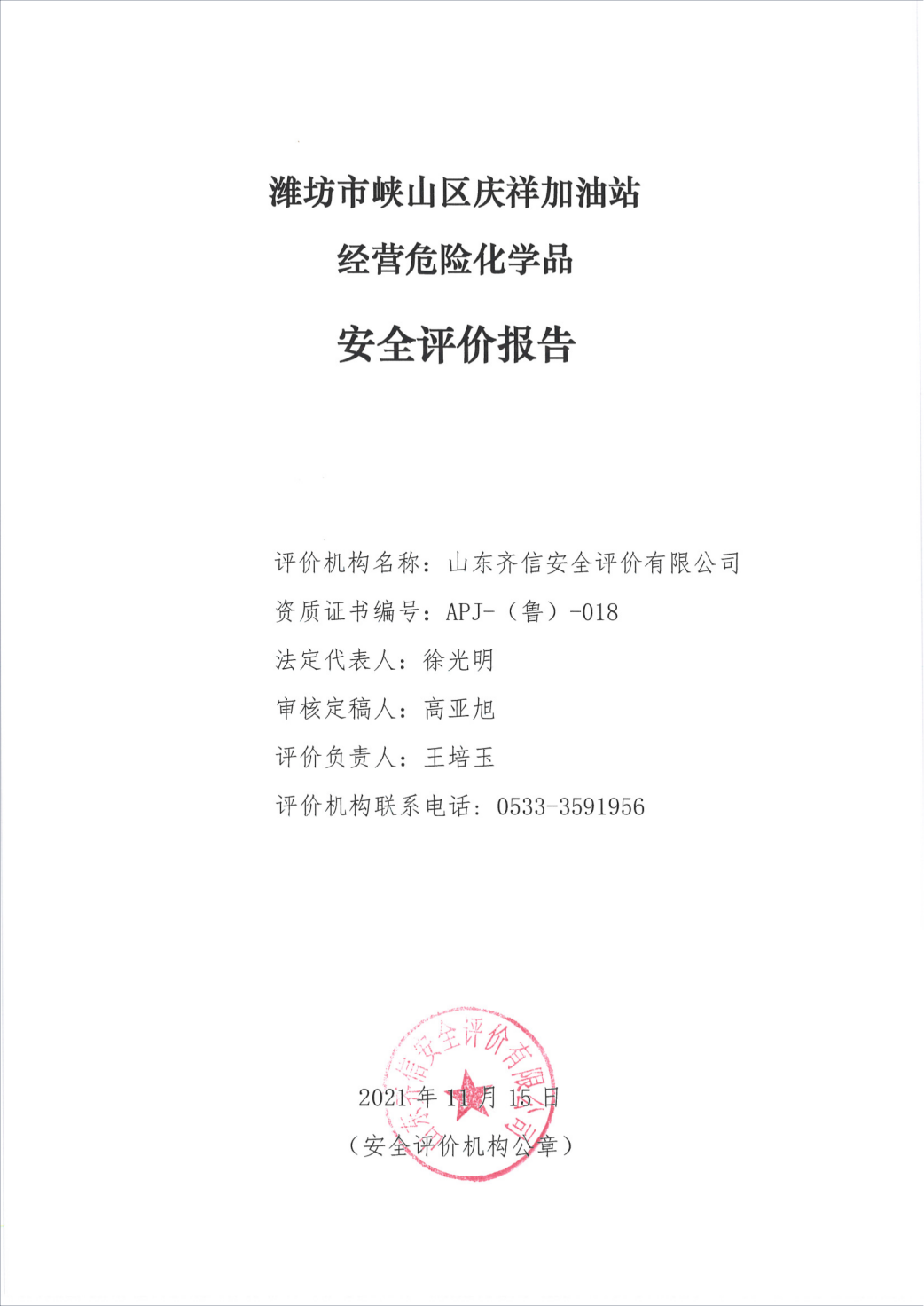 潍坊市峡山区庆祥加油站位于山东省潍坊市峡山区王家庄街道下小路与景黄路交叉口东北角,该站成立于2010年12月10日,投资人为王建,2016年11月29日取得潍坊峡山生态经济开发区市场监督管理局核发的新的营业执照。该加油站主要从事汽油和柴油的经营,经营方式为零售。 该加油站成品油零售经营批准证书有效期为2020年11月27日至2025年11月27日(证书编号:鲁油零售证书第3707063040号)。该站持有的《危险化学品经营许可证》(登记编号:鲁潍危化经[2021]017001号),有效期自2021年08月12日至2024年08月11日。该加油站在营业期间未发生安全事故。 该加油站主要经营的危险化学品为汽油、柴油,共有四枪加油机4台,其中汽油加油枪10支,柴油加油枪6支;该站设有埋地双层储油罐4台,其中2台30m3汽油罐, 2台30m3柴油罐,柴油折半后计入加油站储罐总容积为90m3,该加油站为三级加油站。油罐区日常汽油、柴油的最大存储量分别为47.4t、52.8t,未构成重大危险源。 |
