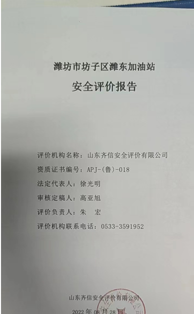 潍坊市坊子区潍东加油站位于潍坊市坊子区潍胶路与眉南路交汇处西侧路南。该加油站类型为个人独资企业,投资人牟建国。该加油站共有职工5人,其中安全管理人员1人,技术管理人员1人,经营油品为汽油和柴油。 该加油站现有汽油双层罐3个,单罐容积30m3,柴油双层罐2个,单罐容积为30 m3,柴油折半计入,该加油站油罐总容积为120m3,为二级加油站。该站于2019年8月21日换发了危险化学品经营许可证(登记编号:鲁潍危化经 [2019]004018号),有效期至2022年11月23日。该站经营期间未发生安全事故。 依据《中华人民共和国安全生产法》(中华人民共和国主席令第13号,中华人民共和国主席令第88号修正)、《危险化学品安全管理条例》(中华人民共和国国务院令第645号)、《危险化学品经营许可证管理办法》(国家安全生产监督管理总局令第55号根据安监总局令第79号修订)的要求,危险化学品经营许可证换发需进行安全评价,因此,潍坊市坊子区潍东加油站委托山东oety欧亿体育安全评价有限公司进行经营危险化学品安全评价。 接受委托后,山东oety欧亿体育安全评价有限公司成立评价组,在进行资料与标准收集、现场调研、项目资料分析、危险与有害因素分析的基础上,依据《安全评价通则》(AQ8001-2007)、《山东省加油站安全评价导则》(鲁安监发〔2006〕114号),通过对该加油站安全管理、站址选择及总平面布置、加油工艺及设施、其他设施等方面的审查,选择相应的评价方法对其危险、有害因素进行辨识和评价,编写完成了《潍坊市坊子区潍东加油站安全评价报告》。 |