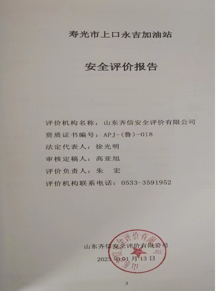 寿光市上口永吉加油站成立于2005年11月2日,注册地位于寿光市上口镇东堤村,投资人为李茂田。经营范围包括零售:汽油[-18℃≤闪点<23℃]、柴油、润滑油(有效期限以许可证为准)(依法须经批准的项目,经相关部门批准后方可开展经营活动)。 该加油站现有3台储罐,其中汽油罐2台,柴油罐1台,单罐容积均为15m3,柴油折半计入,该站储罐总容积为37.5m3,根据《汽车加油加气加氢站技术标准》(GB50156-2021)第3.0.9条之规定,为三级加油站。 该加油站已取得成品油零售经营批准证书,证书编号为:鲁油零售证书第3707123037号,证书有效期为2020年12月25日至2025年12月25日。2020年4月13日取得了危险化学品经营许可证,证书编号为:鲁潍危化经[2020]005013号,有效期2020年04月14日至2023年04月13日。该站经营期间未发生安全事故。 该加油站现有职工5人,其中站长1人,安全员1人,站长、安全员均已通过安全生产知识和管理能力考核合格,并已取证。 依据《中华人民共和国安全生产法》(中华人民共和国主席令[2002]第70号,根据2021年6月10日中华人民共和国第十三届全国人民代表大会常务委员会第二十九次会议《全国人民代表大会常务委员会关于修改〈中华人民共和国安全生产法〉的决定》修正)、《危险化学品安全管理条例》(国务院令第591号,根据国务院令第645号修订)、《危险化学品经营许可证管理办法》(国家安全生产监督管理总局令第55号,根据安监总局令第79号修订)的要求,危险化学品经营许可证换发需进行安全评价,因此,寿光市上口永吉加油站委托山东oety欧亿体育安全评价有限公司进行经营危险化学品安全评价。 接受委托后,山东oety欧亿体育安全评价有限公司成立评价组,在进行资料与标准收集、现场调研、项目资料分析、危险与有害因素分析的基础上,依据《安全评价通则》(AQ8001-2007)、《山东省加油站安全评价导则》(鲁安监发〔2006〕114号),通过对该加油站安全管理、站址选择及总平面布置、加油工艺及设施、其他设施等方面的审查,选择相应的评价方法对其危险、有害因素进行辨识和评价,编写完成了《寿光市上口永吉加油站安全评价报告》。 |