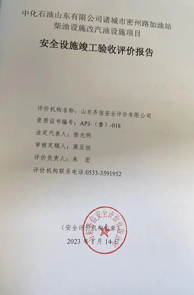 中化石油山东有限公司诸城市密州路加油站位于山东省潍坊市诸城市密州路东段外贸南侧(密州路60号),成立于2013年3月21日,类型为有限责任公司分公司(自然人投资或控股的法人独资),负责人牟洪鹏。 中化石油山东有限公司诸城市密州路加油站主要经营汽油、柴油,是成品油批发零售经营的加油站(以下均称加油站),于2022年10月10日换发了危险化学品经营许可证(证书编号:鲁潍危化经[2022]006042号),有效期:2022年10月12日至2025年10月11日;于2020年5月19日换发了成品油零售经营许可证(证书编号:鲁油零售证书第3707073003号),有效期:2020年5月19日至2025年5月19日。 该加油站原有30m?埋地汽油罐2个,30m?埋地柴油罐2个,总容量90m?(柴油折半),根据《汽车加油加气加氢站技术标准》(GB50156-2021)第3.0.9条之规定,为三级加油站。因经营需要,该加油站将1台30 m?柴油储罐改为92#汽油储罐,将1台加油机原有的两把柴油加油枪更换为两把汽油加油枪,改造后油站折合罐容由90 m?变为105 m?,由三级站升级为二级站。站内原有其他油罐、加油机等设施,以及站房等建筑购物未发生变化。 中化石油山东有限公司诸城市密州路加油站柴油设施改汽油设施项目(以下简称“该项目”)由山东新安达工程咨询有限公司编制了安全预评价报告、由山东鸿运工程设计有限公司编制了安全设施设计专篇,工程施工安装由青岛新华洲建工集团有限公司承担。项目改造完工后,建设单位、施工单位对项目建设、安装情况进行了联合验收,同意交付使用。 根据《中华人民共和国安全生产法》、《危险化学品安全管理条例》、《危险化学品建设项目安全监督管理办法》、《危险化学品经营许可证管理办法》等法律法规要求,该项目建设完成后应进行安全设施竣工验收评价。因此,中化石油山东有限公司诸城市密州路加油站委托山东oety欧亿体育安全评价有限公司对该项目进行安全设施竣工验收评价。 受中化石油山东有限公司诸城市密州路加油站委托,山东oety欧亿体育安全评价有限公司承担了该项目的安全设施竣工验收评价。双方签定《安全评价技术服务合同》后,山东oety欧亿体育安全评价有限公司确定项目负责人,成立评价项目组,根据国家有关安全生产法律法规、行政规章及标准规范要求,通过对企业提供的资料进行分析和现场检查,结合其生产的实际情况,运用科学的评价方法进行定性、定量分析,提出合理、可行的安全对策措施及建议,并按照《危险化学品建设项目安全监督管理办法》、《山东省加油站安全评价导则》和有关法规、技术标准、文件的规定与要求编制完成了本评价报告。中化石油山东有限公司诸城市密州路加油站应对提供资料的真实性负全部责任。 |