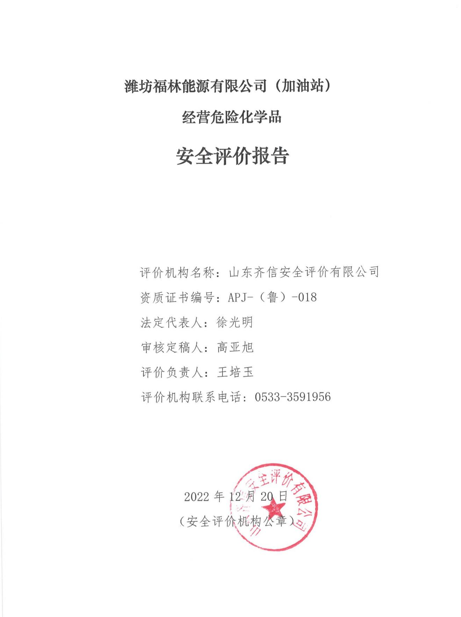 潍坊福林能源有限公司(加油站)位于山东省潍坊市滨海经济技术开发区北海路以东、香江东一街以北,其前身为潍坊大运交通发展有限公司(加油加气合建站),始建于2018年,于2019年12月10日取得潍坊滨海经济技术开发区市场监督管理局核发的新的营业执照,该站法定代表人为林太旺。该加油站主要从事汽油和柴油的经营,经营方式为零售。 2014年6月20日潍坊大运交通发展有限公司与潍坊新奥清洁能源有限公司签订了加油站场地租赁合同。2019年9月10日潍坊新奥清洁能源有限公司将加油站转租给潍坊福林能源有限公司经营。2020年7月9日潍坊新奥清洁能源有限公司与潍坊福林能源有限公司签署了LNG加气站租赁合同,但加气站部分一直处于停业状态。 该站于2020年01月23日取得《成品油零售经营批准证书》,有效期为2020年01月23日至2025年01月23日(证书编号:鲁油零售证书第3707143011号)。该站持有的《危险化学品经营许可证》(证书编号:鲁潍危化经[2019]140190号),有效期自2019年12月05日至2022年12月04日。该加油站在营业期间未发生安全事故。 |