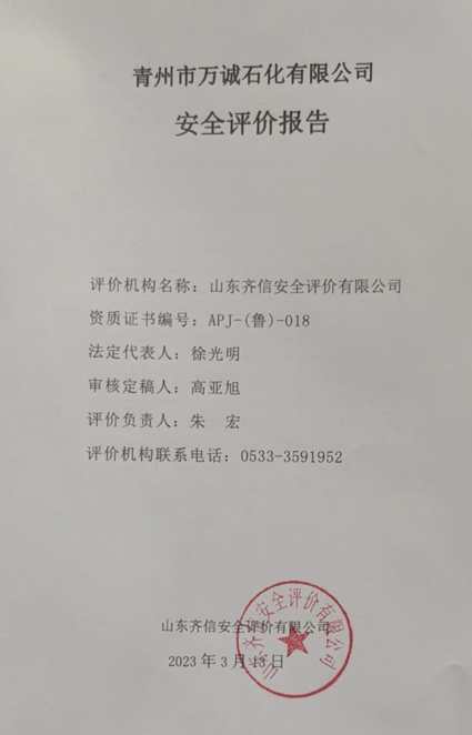 青州市万诚石化有限公司成立于2022年8月31日,地址位于青州市弥河镇郝家村西侧,公司于2022年9月28日取得危险化学品经营许可证(证号:鲁潍危化经[2022]007100号,有效期2022年9月28日至2025年9月27日),于2022年10月24日取得成品油零售许可证(证号:鲁油零售证书第3707113017号,有效期2022年10月24日至2027年10月24日)。 该公司共有职工5人,其中安全管理人员1人,经营油品为汽油和柴油。该公司现有汽油双层罐2个,单罐容积30m3,柴油双层罐2个,单罐容积为30m3,柴油折半计入,该加油站油罐总容积为90m3,为三级加油站。 该加油站原有双枪加油机6台,单枪加油机4台(停用),加油站根据经营需要,准备启用原停用的4台加油机,并且在站内站房南侧增加洗车房,加油站设备设施产生变化,依据《中华人民共和国安全生产法》(中华人民共和国主席令第13号,中华人民共和国主席令第88号修正)、《危险化学品安全管理条例》(中华人民共和国国务院令第645号)、《危险化学品经营许可证管理办法》(国家安全生产监督管理总局令 第55号 根据安监总局令第79号修订)的要求,需进行安全评价,因此,青州市万诚石化有限公司委托山东oety欧亿体育安全评价有限公司进行经营危险化学品安全评价。 接受委托后,山东oety欧亿体育安全评价有限公司成立评价组,在进行资料与标准收集、现场调研、项目资料分析、危险与有害因素分析的基础上,依据《安全评价通则》(AQ8001-2007)、《山东省加油站安全评价导则》(鲁安监发〔2006〕114号),通过对该加油站安全管理、站址选择及总平面布置、加油工艺及设施、其他设施等方面的审查,选择相应的评价方法对其危险、有害因素进行辨识和评价,编写完成了《青州市万诚石化有限公司安全评价报告》。 |
