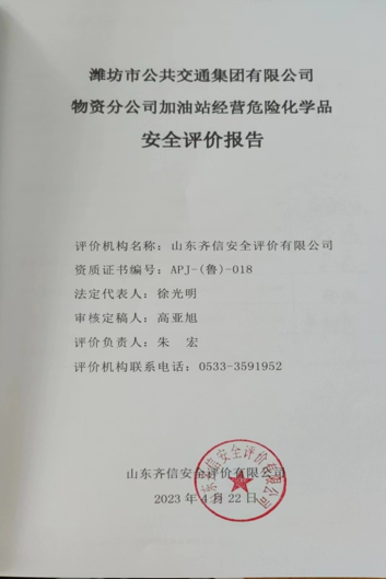 潍坊市公共交通集团有限公司物资分公司加油站位于潍坊市潍城区东风西街669号,法定代表人为任勇,类型为有限责任公司分公司(国有独资)。该加油站成立于1991年3月8日,取得潍坊市潍城区行政审批服务局颁发的营业执照。经营范围:带有储存设施的经营,汽油、柴油(有效期限以许可证为准);销售:汽车配件。(依法须经批准的项目,经相关部门批准后方可开展经营活动)。 该加油站已取得成品油零售经营批准证书,证书编号:鲁油零售证书第3707023007号,证书有效期为2021年2月22日至2026年2月22日。2020年8月19日取得了危险化学品经营许可证,证书编号:鲁潍危化经[2020]002037号,有效期为2020年8月19日至2023年8月18日。该加油站经营期间未发生安全事故。 该加油站现有埋地油罐4个,储罐均为埋地双层SF卧式储罐,单罐容积均为30m3,其中汽油罐2个,柴油罐2个,柴油折半计入,该加油站油罐总容积为90m3,根据《汽车加油加气加氢站技术标准》(GB50156-2021)第3.0.9条之规定,为三级加油站。 该加油站现有职工7人,其中其中安全管理人员1人,技术管理人员1人,主要负责人、安全员已通过安全生产知识和管理能力考核合格,并取证,其他从业人员经本单位培训考核合格。 依据《中华人民共和国安全生产法》(中华人民共和国主席令[2002]第70号,根据2021年6月10日中华人民共和国第十三届全国人民代表大会常务委员会第二十九次会议《全国人民代表大会常务委员会关于修改〈中华人民共和国安全生产法〉的决定》修正)、《危险化学品安全管理条例》(国务院令第591号,根据国务院令第645号修订)、《危险化学品经营许可证管理办法》(国家安全生产监督管理总局令第55号,根据安监总局令第79号修订)的要求,危险化学品经营许可证换发需进行安全评价,因此,潍坊市公共交通集团有限公司物资分公司加油站委托山东oety欧亿体育安全评价有限公司进行经营危险化学品安全评价。 接受委托后,山东oety欧亿体育安全评价有限公司成立评价组,在进行资料与标准收集、现场调研、项目资料分析、危险与有害因素分析的基础上,依据《安全评价通则》(AQ8001-2007)、《山东省加油站安全评价导则》(鲁安监发〔2006〕114号),通过对该加油站安全管理、站址选择及总平面布置、加油工艺及设施、其他设施等方面的审查,选择相应的评价方法对其危险、有害因素进行辨识和评价,编写完成了《潍坊市公共交通集团有限公司物资分公司加油站安全评价报告》。 |