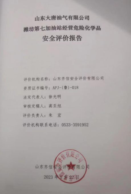 山东大唐油气有限公司潍坊第七加油站位于昌乐县营丘镇徐将军村北潍九路西侧,法定代表人为陈世超,类型为有限责任公司分公司,站经理刘鲁宁。该加油站成立于2008年10月30日,取得昌乐县行政审批服务局颁发的营业执照。经营范围:汽油、柴油零售;零售预包装食品,乳制品(不含婴幼儿配方乳粉),保健食品,在本店内零售卷烟、雪茄烟(有效期限以许可证为准),销售陶瓷制品,工艺品,汽车用品,轮胎,燃油添加剂(不含危险品),化肥;汽车美容,装饰(不含维修);房屋租赁、发布广告,润滑油零售;日用百货便利店经营(依法须经批准的项目,经相关部门批准后方可开展经营活动)。 该加油站已取得成品油零售经营批准证书,证书编号:鲁油零售证书第3707053051号,证书有效期为2021年10月19日至2026年10月19日。2020年5月11日取得了危险化学品经营许可证,证书编号:鲁潍危化经[2020]011015号,有效期为2020年6月2日至2023年6月1日。该加油站经营期间未发生安全事故。 该加油站现有埋地油罐4个,储罐均为埋地双层SF卧式储罐,单罐容积均为30m3,其中汽油罐2个,柴油罐2个,柴油折半计入,该加油站油罐总容积为90m3,根据《汽车加油加气加氢站技术标准》(GB50156-2021)第3.0.9条之规定,为三级加油站。 该加油站现有职工6人,其中其中安全管理人员1人,技术管理人员1人,主要负责人、站经理、安全员已通过安全生产知识和管理能力考核合格,并取证,其他从业人员经本单位培训考核合格。 依据《中华人民共和国安全生产法》(中华人民共和国主席令[2002]第70号,根据2021年6月10日中华人民共和国第十三届全国人民代表大会常务委员会第二十九次会议《全国人民代表大会常务委员会关于修改〈中华人民共和国安全生产法〉的决定》修正)、《危险化学品安全管理条例》(国务院令第591号,根据国务院令第645号修订)、《危险化学品经营许可证管理办法》(国家安全生产监督管理总局令第55号,根据安监总局令第79号修订)的要求,危险化学品经营许可证换发需进行安全评价,因此,山东大唐油气有限公司潍坊第七加油站委托山东oety欧亿体育安全评价有限公司进行经营危险化学品安全评价。 接受委托后,山东oety欧亿体育安全评价有限公司成立评价组,在进行资料与标准收集、现场调研、项目资料分析、危险与有害因素分析的基础上,依据《安全评价通则》(AQ8001-2007)、《山东省加油站安全评价导则》(鲁安监发〔2006〕114号),通过对该加油站安全管理、站址选择及总平面布置、加油工艺及设施、其他设施等方面的审查,选择相应的评价方法对其危险、有害因素进行辨识和评价,编写完成了《山东大唐油气有限公司潍坊第七加油站安全评价报告》。 |