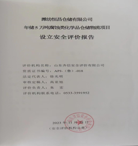 潍坊恒昌仓储有限公司是一家从事货物仓储服务等业务的公司,成立于2023 年 09 月 12 日,公司坐落在山东省,详细地址为:山东省潍坊市滨海区大家洼街道临港路以东、黄河西街以北;法人是韩士卫,注册资本为 300 万元,企业的经营范围为:一般项目:普通货物仓储服务(不含危险化学品等需许可审批的项目)。(除依法须经批准的项目外,凭营业执照依法自主开展经营活动)。 为拓展区内业务,服务于潍坊滨海石油化工、新和成化工、国邦药业、海化氯碱等本地化工龙头企业,同时服务于国际港口化工贸易仓储运输,潍坊恒昌仓储有限公司投资 18000 万元,拟建设“年储 5 万吨腐蚀类化学品仓储物流项目”(以下简称为“该项目”)。该项目于 2023 年 9 月 18 日取得山东省建设项目备案证明,项目代码:2309-370772-89-01-587120。项目建成后是本区唯一专业的第八类腐蚀化学品仓储运输企业,有稳定的客户需求,经济效益良好。 根据《危险化学品目录(2015 版)》(2022 年调整),该项目储存品种:盐酸(31%)、液碱(32%)、氢溴酸(48%)、溴素均属于危险化学品,因此该项目属于新建危险化学品储存经营项目。 为贯彻“安全第一、预防为主、综合治理”的安全生产方针,根据《中华人民共和国安全生产法》(中华人民共和国主席令[2002]第 70 号,经主席令[2009]第 18 号修订,经主席令[2014]第 13 号修订,经主席令[2021]第 88 号修订)《危险化学品建设项目安全监督管理办法》(国家安全生产监督管理总局令[2012]第 45 号,经国家安全生产监督管理总局令[2015]79 号修订)等的有关要求,该项目需进行设立安全评价。为此,潍坊恒昌仓储有限公司委托山东oety欧亿体育安全评价有限公司依据国家有关安全生产法律、法规、规范标准要求,对该公司年储 5 万吨腐蚀类化学品仓储物流项目进行设立安全评价工作。 我公司接受委托后,成立了评价组,按照《安全评价通则》 (AQ8001-2007)和《安全预评价导则》(AQ8002-2007)对设立安全评价工作的程序要求,在对该项目相关资料充分了解和分析的基础上,以该项目《项目申请报告》为主要依据,根据设立安全评价工作的有关要求,收集了相关资料,对项目的危险、有害因素进行了辨识与分析,根据主要危险、有害因素的分布及评价单元的划分原则划分了评价单元,采用定性、定量的评价方法对该项目固有危险程度和风险程度进行了评价,提出了补充的安全对策措施和建议,做出了安全评价结论,并编制完成了安全评价报告。 |