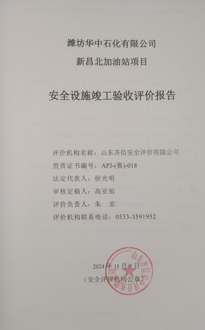 潍坊华中石化有限公司新昌北加油站成立于2024年01月17日,注册地位于山东省潍坊高新区新昌街道寨子社区健康东街高新二路东1公里路北1幢108,负责人为王树振。经营范围包括一般项目:石油制品销售(不含危险化学品);润滑油销售;洗车服务;汽车拖车、求援、清障服务;日用百货销售。(除依法须经批准的项目外,凭营业执照依法自主开展经营活动)。 潍坊华中石化有限公司于2022年7月29日取得了由潍坊高新技术产业开发区科技统计局颁发的《关于对山东壳牌石油有限公司潍坊清池街北加油站原址改建的申请批复》,潍坊华中石化有限公司对山东壳牌石油有限公司潍坊清池街北加油站进行原址改建。改建后加油站名称:潍坊华中石化有限公司新昌北加油站。 该加油站占地面积3072㎡,在原址进行改建,新建站房一座(砖混结构,占地面积140㎡,建筑面积140㎡)、罩棚一座(钢结构,建筑面积360㎡)、加油机4台[六枪三油品(柴油、92#汽油、95#汽油)加油机1台、六枪三油品(柴油、92#汽油、98#汽油)加油机1台、四枪双油品(92#汽油、95#汽油)加油机1台、四枪双油品(92#汽油、98#汽油)加油机1台]、承重式储罐区1座(内设埋地油罐6个:30m?的92#汽油储罐2个、30m?的95#汽油储罐1个、30m?的98#汽油储罐1个、30m?柴油储罐2个)、丙类储存间一座、洗车机一台,柴油折半计算,总容积为150m?,为二级加油站;设有卸油油气回收系统、加油油气回收系统和三次油气回收系统。 该加油站新建项目的设立安全评价单位为山东实华安全技术有限公司,安全设施设计单位为山东鸿运工程设计有限公司,施工单位为兴润建设集团有限公司。该项目于2024年5月7日开工建设,2024年8月27日建成。 根据《中华人民共和国安全生产法》(中华人民共和国主席令[2002]第70号,根据2021年6月10日中华人民共和国第十三届全国人民代表大会常务委员会第二十九次会议《全国人民代表大会常务委员会关于修改〈中华人民共和国安全生产法〉的决定》修正)、《危险化学品建设项目安全监督管理办法》(国家安全生产监督管理总局令第45号,总局令79号修订)、《建设项目安全设施“三同时”监督管理办法》(国家安全生产监督管理总局令第36号,总局令77号修订)、《山东省危险化学品建设项目安全监督管理办法实施细则》(鲁安监发 [2018]17 号)的规定,在该加油站新建项目竣工后,应对其设备、设施及管理状况进行评价,为该加油站新建项目安全验收提供依据。为此,潍坊华中石化有限公司委托山东oety欧亿体育安全评价有限公司对“潍坊华中石化有限公司新昌北加油站”进行安全设施竣工验收评价。 我公司接受委托后,立即成立了由专业评价师组成的评价小组,依据安全设施竣工验收评价的工作程序,在对项目相关资料充分了解和分析的基础上,根据安全设施竣工验收评价工作的有关要求,编制了安全设施竣工验收评价工作计划书,并结合该项目的特征,编制了安全设施竣工验收评价检查表,进行了现场调研,对该项目的安全措施及设施进行了检查,通过对该项目相关资料的汇总、分析和处理,对该项目进行了安全设施竣工验收评价,并编制完成了安全设施竣工验收评价报告书。 |