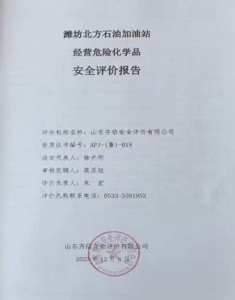 潍坊北方石油加油站原名潍坊市坊子区穆村供销合作社金利加油站,位于潍坊市坊子区九龙街办杨庄村东。该站成立于2023年11月20日,取得潍坊市坊子区行政审批服务局颁发的营业执照。该加油站经营范围: 一般项目:润滑油销售。(除依法须经批准的项目,凭营业执照依法自主开展经营活动)。类型为个人独资企业。 该加油站现有埋地油罐4台,储罐均为埋地双层SF卧式储罐,汽油罐3台(单罐容积为30m32台,单罐容积为15m31台),柴油罐1台(单罐容积为15m3),柴油折半计入,该加油站油罐总容积为82.5m3,根据《汽车加油加气加氢站技术标准》(GB50156-2021)第3.0.9条之规定,为三级加油站。 该加油站现有职工6人,其中站长1人,安全员1人,站长和安全员已通过安全生产知识和管理能力考核合格,并取证;其他从业人员按照国家有关规定,经安全教育和培训并考核合格。 加油站具有成品油零售经营批准证书和危险化学品经营许,主要从事汽油、柴油零售,依据《危险化学品经营许可证管理办法》第十四条已经取得经营许可证的企业变更企业名称、主要负责人、注册地址或者危险化学品的储存设施及其监控措施的,应当自变更之日起20个工作日内,向本办法第五条规定的发证机关提出书面变更申请,并提交资料。第十八条规定经营许可证的有效期为3年。有效期满后,企业需要继续从事危险化学品经营活动的,应当在经营许可证有效期满三个月前,向本办法第五条规定的发证机关提出经营许可证的延期申请,并提交延期申请及本办法第九条规定的申请文件、资料。企业提出经营许可证延期申请时,可以同时提交变更申请,并向发证机关提交相关文件、资料,因此,潍坊北方石油加油站委托山东oety欧亿体育安全评价有限公司进行经营危险化学品安全评价。 接受委托后,山东oety欧亿体育安全评价有限公司成立评价组,在进行资料与标准收集、现场调研、项目资料分析、危险与有害因素分析的基础上,依据《安全评价通则》(AQ8001-2007)、《山东省加油站安全评价导则》(鲁安监发〔2006〕114号),通过对该加油站安全管理、站址选择及总平面布置、加油工艺及设施、其他设施等方面的审查,选择相应的评价方法对其危险、有害因素进行辨识和评价,编写完成了《潍坊北方石油加油站安全评价报告》。 |