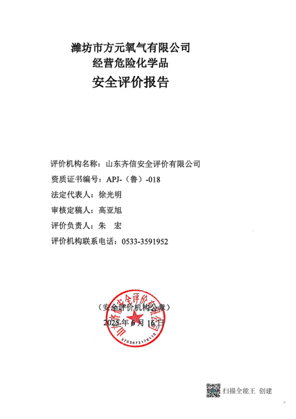潍坊市方元氧气有限公司(以下均称该公司)成立于2003年06月30日,企业类型:其他有限责任公司,注册资本:505.6万元,法定代表人:孙益彤,住所:潍坊市潍城区西环路与泰祥街交叉口西北角,经营范围包括许可项目:危险化学品经营;移动式压力容器/气瓶充装。(依法须经批准的项目,经相关部门批准后方可开展经营活动,具体经营项目以相关部门批准文件或许可证件为准)一般项目:技术服务、技术开发、技术咨询、技术交流、技术转让、技术推广;特种设备出租;仪器仪表销售;机械零件、零部件销售;五金产品零售;五金产品批发;金属结构制造;金属结构销售。(除依法须经批准的项目外,凭营业执照依法自主开展经营活动)。 该公司主要储存经营设施有液氩储罐、液氧储罐、液体二氧化碳储罐各1台及相应配套设备各1套。 该公司已取得危险化学品经营许可证,证书编号:鲁潍(潍城)危化经[2022]000011号,经营范围:二氧化碳[压缩的或液化的]、氩[压缩的或液化的]、氧[压缩的或液化的]、丙烷、氢、氮[压缩的或液化的]、乙炔、氦[压缩的或液化的]***(乙炔、丙烷、氢、氮[压缩的或液化的]、氦[压缩的或液化的]为无储存,其他有储存批发零售)。 该公司危险化学品经营许可证有效期至2025年7月18日,现申请换证。根据《危险化学品经营许可证管理办法》(原国家安全生产监督管理总局令第55号,根据国家安全生产监督管理总局令第79号修订)的要求,潍坊市方元氧气有限公司委托山东oety欧亿体育安全评价有限公司进行经营危险化学品安全评价。 接受委托后,本公司成立了项目评价组,并展开工作。在对该企业进行现场勘察、同行业类比分析和查阅企业提供的评价相关资料的基础上,通过定性、定量分析评价,找出了该公司危险化学品经营过程中存在的问题,提出了相应的安全对策措施及建议、给出了安全评价结论,并完成了安全评价报告的编制。 |