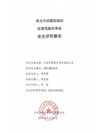 寿光市恒源加油站成立于2009年02月25日,注册地位于山东省潍坊市寿光市双王城生态经济园区牛头镇村村南,法定代表人为马永杰。经营范围包括零售:汽油(有效期限以许可证为准)、柴油、润滑油(依法须经批准的项目,经相关部门批准后方可开展经营活动)。 该加油站现有4台储罐,其中汽油罐2台,柴油罐2台 ,具体为92#汽油双层罐1个,容积为10m3,95#汽油双层罐1个,容积10m3,柴油双层罐2个,容积分别为10m3,柴油罐随季节调整品种。柴油折半计入,该站储罐总容积为30m3,根据《汽车加油加气加氢站技术标准》(GB50156-2021)第3.0.9条之规定,为三级加油站。 因《危险化学品目录(2015版)》(应急管理部 工业和信息化部 公安部 生态环境部 交通运输部 农业农村部 卫生健康委 市场监管总局 铁路局 民航局 公告[2022]第8号)将“1674柴油[闭杯闪点≤60℃]”调整为“1674柴油”),2023年11月23日换发了危险化学品经营许可证,证书编号为:鲁潍危化经[2022] 005144号,有效期至2025年11月20日;于2024年1月25日换发了成品油零售经营许可证(证书编号:鲁油零售证书第3707123031号),有效期至2029年1月25日。 依据《中华人民共和国安全生产法》(中华人民共和国主席令[2002]第70号,根据2021年6月10日中华人民共和国第十三届全国人民代表大会常务委员会第二十九次会议《全国人民代表大会常务委员会关于修改〈中华人民共和国安全生产法〉的决定》修正)、《危险化学品安全管理条例》(国务院令第591号,根据国务院令第645号修订)、《危险化学品经营许可证管理办法》(国家安全生产监督管理总局令第55号,根据安监总局令第79号修订)的要求,危险化学品经营许可证换发需进行安全评价,因此,寿光市恒源加油站委托山东oety欧亿体育安全评价有限公司进行经营危险化学品安全评价。 接受委托后,山东oety欧亿体育安全评价有限公司成立评价组,在进行资料与标准收集、现场调研、项目资料分析、危险与有害因素分析的基础上,依据《安全评价通则》(AQ8001-2007)、《山东省加油站安全评价导则》(鲁安监发〔2006〕114号),通过对该加油站安全管理、站址选择及总平面布置、加油工艺及设施、其他设施等方面的审查,选择相应的评价方法对其危险、有害因素进行辨识和评价,编写完成了《寿光市恒源加油站安全评价报告》。 |