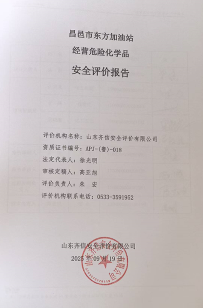 昌邑市东方加油站位于昌邑市昌平路与永大路交汇处西南角,成立于2001年11月19日,取得昌邑市市场监督管理局核发的营业执照,类型为个人独资企业,投资人杨林南。经营范围:零售柴油、汽油、润滑油。(有效期限以许可证为准)。零售卷烟、雪茄烟;零售预包装食品,散装食品、日用百货。(依法须经批准的项目,经相关部门批准后方可开展经营活动)。 该站持有的《成品油零售经营批准证书》(证书编号:鲁油零售证书第3707083047号),有效期自2021年11月30日至2026年11月30日;《危险化学品经营许可证》(证书编号:鲁潍危化经【2022010060】),有效期自2022年11月08日至2025年11月07日。该站在营业期间未发生安全事故。 该加油站现有埋地油罐5台(储罐为单层储罐,设防渗池),单罐容积均为30m3,汽油罐3台,柴油罐2台,柴油折半计入,该加油站油罐总容积为120m3,根据《汽车加油加气加氢站技术标准》(GB50156-2021)第3.0.9条之规定,为二级加油站。 该加油站现有从业人员5人,设有站长1人,安全管理人员1名。该站已建立了安全生产责任制度、安全管理制度和安全操作规程等,制定了生产安全事故应急救援预案,成立了安全生产领导小组,配备了安全员,主要负责人和安全员取得了安全生产知识和管理能力考核合格证。其他从业人员经本单位三级培训考核合格。 依据《中华人民共和国安全生产法》(中华人民共和国主席令[2002]第70号,根据2021年6月10日中华人民共和国第十三届全国人民代表大会常务委员会第二十九次会议《全国人民代表大会常务委员会关于修改〈中华人民共和国安全生产法〉的决定》修正)、《危险化学品安全管理条例》(国务院令第591号,根据国务院令第645号修订)、《危险化学品经营许可证管理办法》(国家安全生产监督管理总局令第55号,根据安监总局令第79号修订)、《山东省危险化学品经营许可证实施细则》(鲁应急发〔2025〕4 号)的要求,危险化学品经营许可证换发需进行安全评价,因此,昌邑市东方加油站委托山东oety欧亿体育安全评价有限公司进行经营危险化学品安全评价。 接受委托后,我公司立即成立评价组,在进行资料与标准收集、现场调研、项目资料分析、危险与有害因素分析的基础上,依据《山东省加油站安全评价导则》(鲁安监发[2006]114号),在经营单位的通力合作下,对加油站进行了评价并编写完成了《昌邑市东方加油站经营危险化学品安全评价报告》。 |