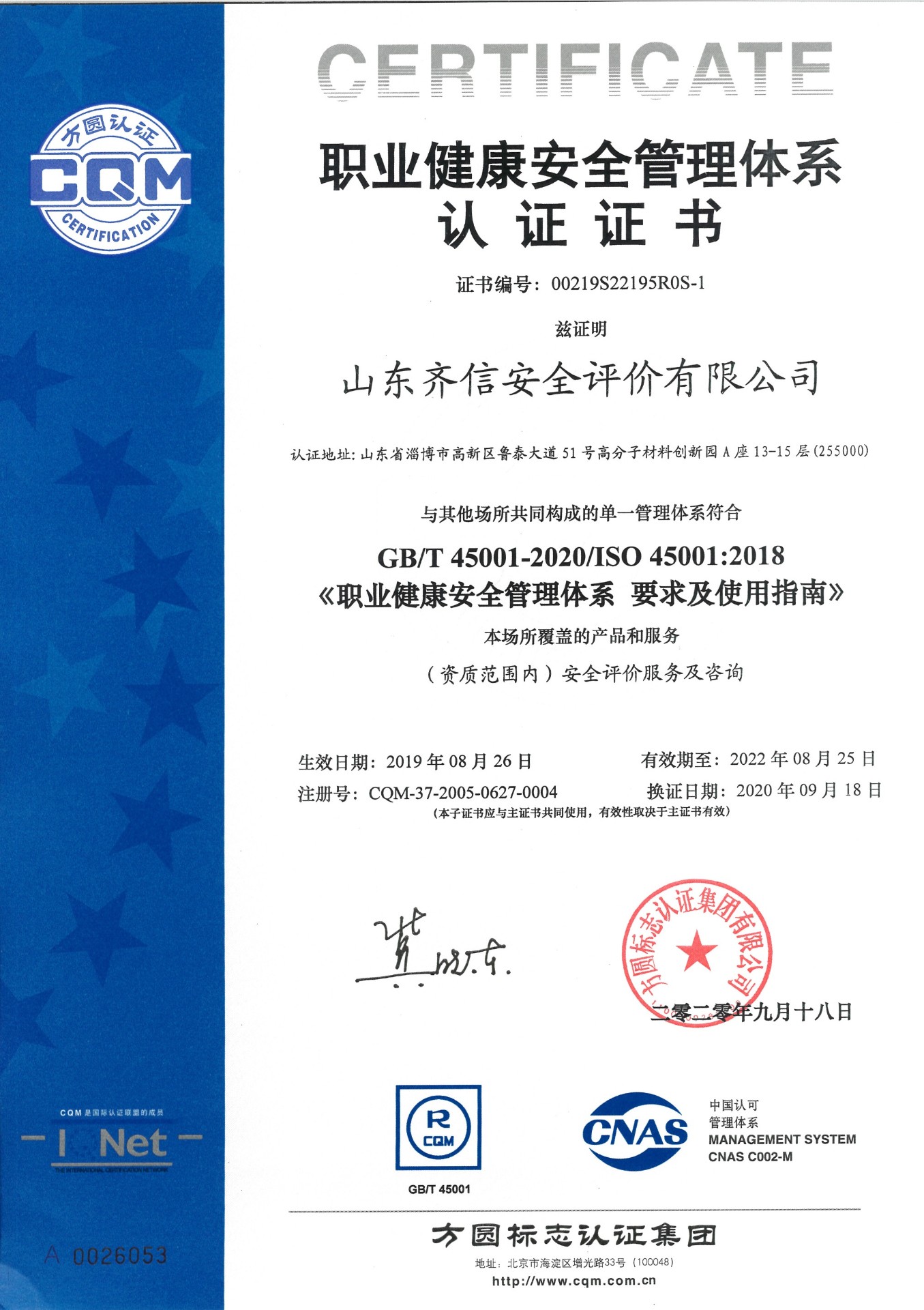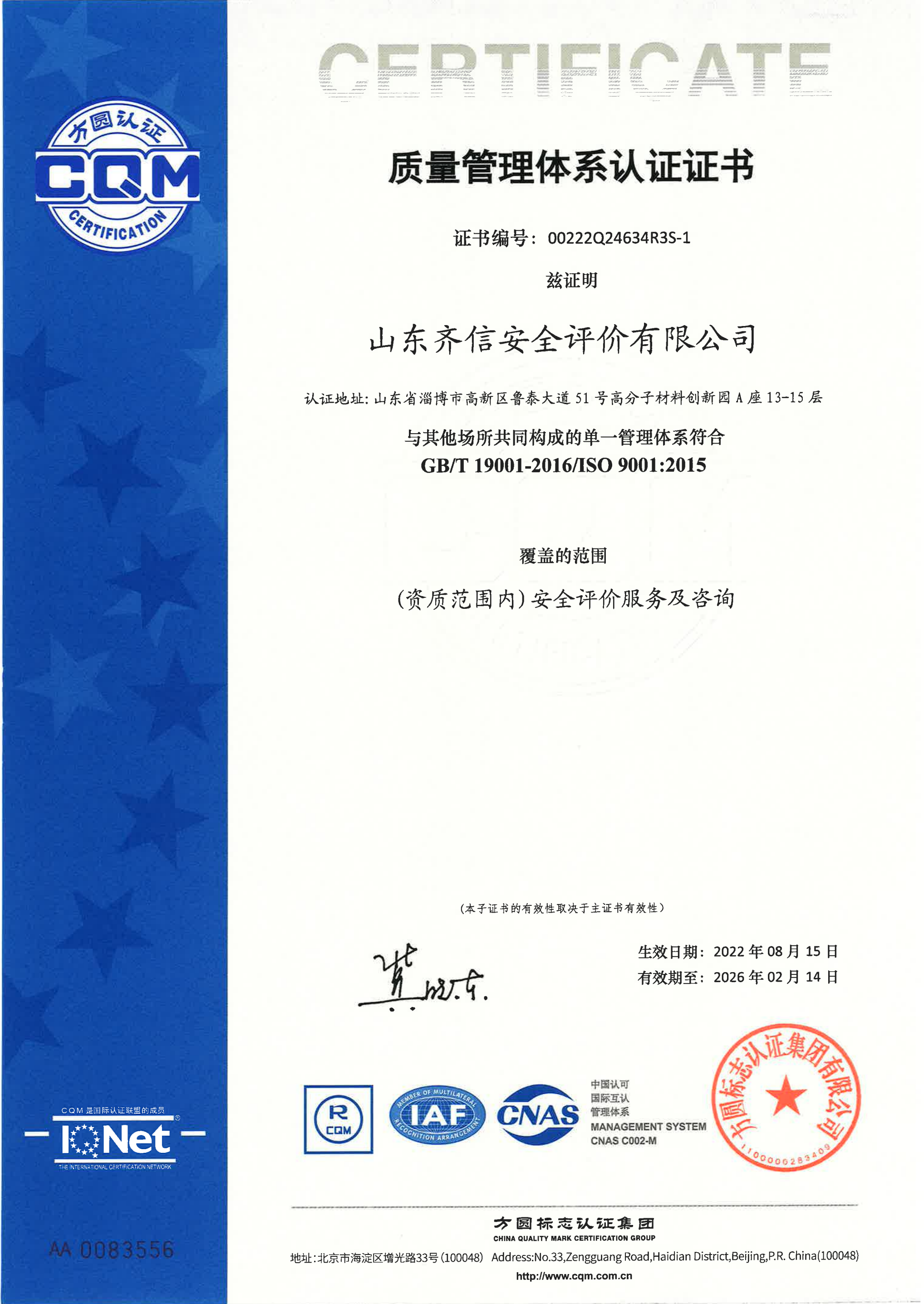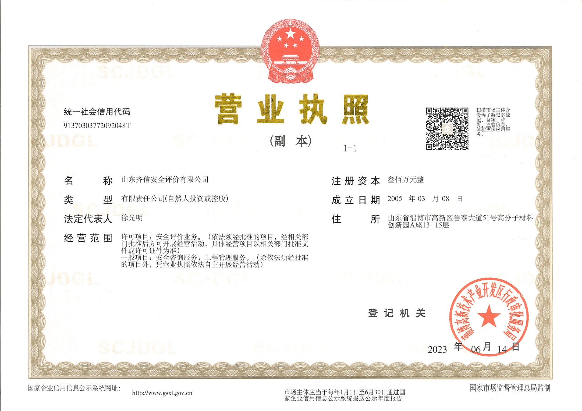 山东oety欧亿体育安全评价有限公司成立于2005年3月,注册资本300万元人民币,固定资产总值804.8728万元。法定代表人徐光明,注册地址及办公地址位于淄博高新区鲁泰大道51号高分子材料创新园A座13-15楼。2005年9月取得安全评价机构乙级资质。自国家应急部1号令实施以来,公司于2020年1月15日取得新安全评价资质,业务范围包括:陆上油气管道运输业;石油加工业,化学原料、化学品及医药制造业;金属冶炼。2018年12月21日取得安全生产标准化二级评审单位,评审范围:危险化学品、纺织、建材、轻工、冶金、机械。 公司现有人员41人,其中专职安全评价师37人,注册安全工程师26人,研究员1人、硕士5人、双学士1人,山东省安全专家库专家1人、教授级高工1人,高级工程师8人、工程师22人,专职危险化学品标准化评审员、工商贸标准化评审员30人,本科以上学