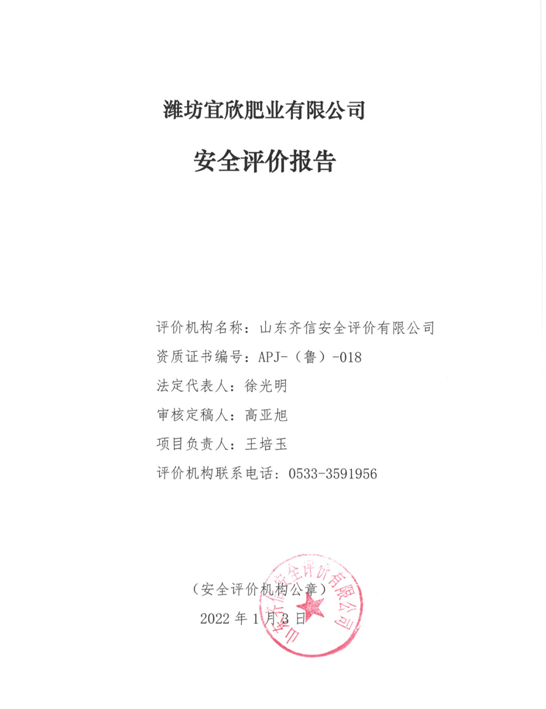 潍坊宜欣肥业有限公司危险化学品安全使用项目