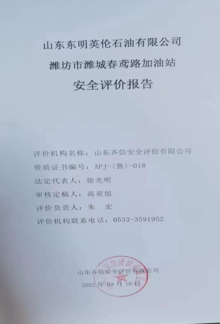 山东东明英伦石油有限公司潍坊市潍城春鸢路加油站 安全评价