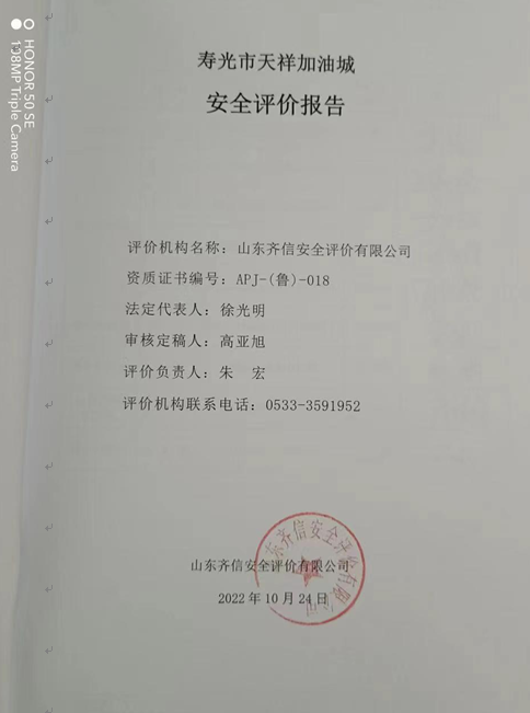 寿光市天祥加油城成立于2002年07月12日,注册地位于潍坊市寿光市开发区北环路北侧,法定代表人为李树文。经营范围包括零售:汽油、柴油(有效期限以许可正为准)、润滑油(依法需经批准的项目,经相关部门批准后方可开展经营活动)。类型为个人独资企业。 该加油站原有 5 台储罐,容积均为 30m3 ,其中汽油罐3台,柴油罐2台。罩棚下设 16 台双枪单油品加油机、3台CNG 加气机(1台CNG加气机已停用),站房 1 座及其他附属设施。该加油站储罐总容积为 120m3(柴油罐容积折半计入油罐总容积),CNG加气设备设施未发生变动,站内储气井容积为 8m3,《汽车加油加气加氢站技术标准》(GB50156-2021)第3.0.15条之规定为二级合建站。 该加油站已取得成品油零售经营批准证书,证书编号为:鲁油零售证书第 3707123050号,有效期至2026年01月18日。2019年11月12日取得了危险化学品经营许可证,证书编号为:鲁潍危化经[2019]005171号,有效期至2022年11月12日。 该加油站现有职工11人,其中站长1人,安全员1人,站长和安全员已通过安全生产知识和管理能力考核合格,并取证。 依据《中华人民共和国安全生产法》(中华人民共和国主席令[2002]第70号,根据2021年6月10日中华人民共和国第十三届全国人民代表大会常务委员会第二十九次会议《全国人民代表大会常务委员会关于修改〈中华人民共和国安全生产法〉的决定》修正)、《危险化学品安全管理条例》(国务院令第591号,根据国务院令第645号修订)、《危险化学品经营许可证管理办法》(国家安全生产监督管理总局令第55号,根据安监总局令第79号修订)的要求,危险化学品经营许可证换发需进行安全评价,因此,寿光市天祥加油城委托山东oety欧亿体育安全评价有限公司进行经营危险化学品安全评价。 接受委托后,山东oety欧亿体育安全评价有限公司成立评价组,在进行资料与标准收集、现场调研、项目资料分析、危险与有害因素分析的基础上,依据《安全评价通则》(AQ8001-2007)、《山东省加油站安全评价导则》(鲁安监发〔2006〕114号),通过对该加油站安全管理、站址选择及总平面布置、加油工艺及设施、其他设施等方面的审查,选择相应的评价方法对其危险、有害因素进行辨识和评价,编写完成了《寿光市天祥加油城安全评价报告》。 |