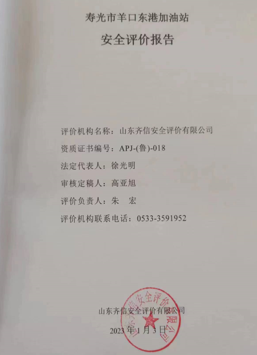 寿光市羊口东港加油站成立于2005年01月11日,注册地位于寿光市羊口镇进港路一号羊临路东侧,投资人为张治国。经营范围包括零售:汽油、柴油(有效期限以许可证为准)(依法须经批准的项目,经相关部门批准后方可开展经营活动)。 该加油站现有埋地油罐3个,储罐均为双层储罐,具体为单罐容积10m3的埋地汽油罐2台,单罐容积30m3的埋地柴油罐1台,柴油折半计入,该加油站油罐总容积为35m3,根据《汽车加油加气加氢站技术标准》(GB50156-2021)第3.0.9条之规定,为三级加油站。 该加油站于2020年3月24日换发了危险化学品经营许可证(证书编号:鲁潍危化[2019] 005201号),有效期至2023年3月24日;于2021年01月18日换发了成品油零售经营许可证(证书编号:鲁油零售证书第3707123062),有效期至2026年01月18日。 该加油站现有职工5人,其中站长1人,安全员1人,站长和安全员已通过安全生产知识和管理能力考核合格,并取证。 依据《中华人民共和国安全生产法》(中华人民共和国主席令[2002]第70号,根据2021年6月10日中华人民共和国第十三届全国人民代表大会常务委员会第二十九次会议《全国人民代表大会常务委员会关于修改〈中华人民共和国安全生产法〉的决定》修正)、《危险化学品安全管理条例》(国务院令第591号,根据国务院令第645号修订)、《危险化学品经营许可证管理办法》(国家安全生产监督管理总局令第55号,根据安监总局令第79号修订)的要求,危险化学品经营许可证换发需进行安全评价,因此,寿光市羊口东港加油站委托山东oety欧亿体育安全评价有限公司进行经营危险化学品安全评价。 接受委托后,山东oety欧亿体育安全评价有限公司成立评价组,在进行资料与标准收集、现场调研、项目资料分析、危险与有害因素分析的基础上,依据《安全评价通则》(AQ8001-2007)、《山东省加油站安全评价导则》(鲁安监发〔2006〕114号),通过对该加油站安全管理、站址选择及总平面布置、加油工艺及设施、其他设施等方面的审查,选择相应的评价方法对其危险、有害因素进行辨识和评价,编写完成了《寿光市羊口东港加油站安全评价报告》。 |