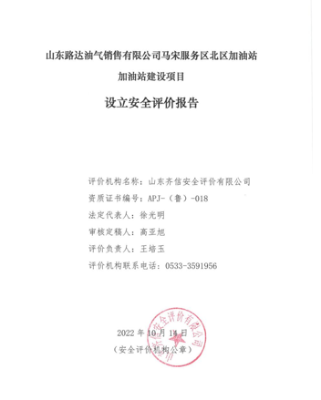 山东路达油气销售有限公司马宋服务区北区加油 站项目位于山东省潍坊市昌乐县营丘镇济南至潍坊高速公路K75 处北侧。2022年5月25日取得昌乐县行政审批服务局核发的企业名称预先登记通知书。该加油站归山东路达油气销售有限公司进行管理。 山东路达油气销售有限公司马宋服务区北区加油站项目总占地面积为3200m2,总投资为450万元,建设内容包括新建罩棚1座,面积1650m2;新建站房1层,占地面积169.1m2,含办公室、便利店、配电室、餐厅、控制室、备餐间(无明火)等;集液器 1 台,消防一体箱(含危废间),三次油气回收处理装置1台,加油机6台(其中4台四枪四油品加油机,2台双枪双油品加油机),双层埋地油罐 5 台(其中30m3埋地汽油罐2台,30m3埋地柴油罐1台,50m3埋地汽油罐1台,50m3埋地柴油罐1台),加油站储罐总容积为150m3(柴油折半计),60m3LNG低温卧式储罐1台,LNG双枪加气机2台,LNG加气站低温潜液泵1台,依据《汽车加油加气加氢站技术标准》GB50156-2021第3.0.16条,该项目为一级加油加气站。 |