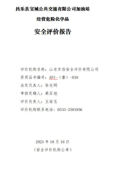 昌乐县宝城公共交通有限公司加油站经营危险化学品项目安全现状评价报告
