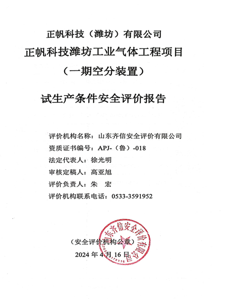 正帆科技(潍坊)有限公司成立于2021年06月03日,企业类型为有限责任公司(港澳台投资、非独资),注册地位于潍坊滨海经济技术开发区大家洼街道黄海路以西、规划支路以南,法定代表人为史可成,注册资本2000万美元,经营范围包括一般项目:工程和技术研究和试验发展;基础化学原料制造(不含危险化学品等许可类化学品的制造);特种设备出租;机械设备租赁;陆地管道运输;气体、液体分离及纯净设备销售;电子专用材料制造;电子专用材料销售;仪器仪表销售;半导体器件专用设备销售;机械电气设备销售;光伏设备及元器件销售;电子产品销售;技术服务、技术开发、技术咨询、技术交流、技术转让、技术推广。(除依法须经批准的项目外,凭营业执照依法自主开展经营活动)许可项目:道路货物运输(含危险货物);水路危险货物运输;移动式压力容器/气瓶充装;药品批发;药品零售。(依法须经批准的项目,经相关部门批准后方可开展经营活动,具体经营项目以相关部门批准文件或许可证件为准)。 为增加公司的业务辐射范围,与公司现有产品产生协同效应,提高公司市场竞争优势,上海正帆科技股份有限公司计划由全资子公司上海徕风工业科技有限公司与香港正帆国际贸易有限公司共同出资新设全资孙公司正帆科技(潍坊)有限公司,在潍坊滨海经济技术开发区实施正帆科技潍坊工业气体工程项目。该项目于2021年11月11日取得了山东省建设项目备案证明,项目代码:2111-370700-04-01-532024。项目分二期建设,一期为生产氧氮氩的空气分离装置,二期工程为单氮空分及钢瓶充装生产线。 正帆科技(潍坊)有限公司正帆科技潍坊工业气体工程项目(一期空分装置)由山东应急安全技术服务有限公司进行了设立安全评价,于2022年5月28日取得潍坊市应急管理局出具的《危险化学品建设项目安全审查意见书》,编号:潍应急危化项目审字[2022]0042号;由中冶华天南京工程技术有限公司进行了安全设施设计,于2022年11月26日取得潍坊市应急管理局出具的《危险化学品建设项目安全审查意见书》,编号:潍应急危化项目审字[2022]0095号。项目施工单位为江苏禾桥建设集团有限公司,监理单位为上海宝钢工程咨询有限公司。该项目于2023年4月开工建设,于2024年2月建设完成。企业根据《山东省化工装置安全试车工作规范》(DB37/T1854-2020)编制了《正帆科技潍坊工业气体工程项目(一期空分装置)试生产方案》,于2024年3月组织专家对试生产方案进行了审查,企业已根据审查意见进行修订。 根据《危险化学品建设项目安全监督管理办法》(国家安监总局45号令、79号令修订)、《山东省<危险化学品建设项目安全监督管理办法>实施细则》(鲁安监发〔2018〕17号)、《关于进一步加强化工建设项目试生产环节安全管理的通知》(鲁安办明电〔2015〕9号)的要求,正帆科技(潍坊)有限公司委托山东oety欧亿体育安全评价有限公司对正帆科技潍坊工业气体工程项目(一期空分装置)进行试生产条件安全评价。 我公司接到委托后,成立了评价项目组,依据《安全评价通则》(AQ8001-2007)、《关于进一步加强化工建设项目试生产环节安全管理的通知》(鲁安办明电[2015]9号)的相关要求,在对项目试生产方案及相关资料充分了解和分析的基础上,对照《山东省化工装置安全试车工作规范》(DB37/T1854-2020)等标准规范,编制了安全检查表,进行了现场调研,对该项目的试生产条件进行确认,在此基础上编制完成了试生产条件安全评价报告书。 |