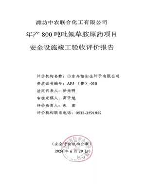 潍坊中农联合化工有限公司成立于2006年10月27日,注册资本12740万元,为有限责任公司(自然人投资或控股的法人独资),法定代表人苑文强,位于潍坊滨海经济开发区临港化工园内,总占地面积162亩。 潍坊中农联合化工有限公司是国家定点农药生产企业,属于山东中农联合生物科技股份有限公司的全资子公司。山东中农联合生物科技股份有限公司是中国农资集团投资控股企业,以生物农药、中间体及精细化工产品的生产和销售为主营业务。 潍坊中农联合化工有限公司投资建设了年产800吨吡氟草胺项目(以下称该项目)。该项目于2021年9月1日取得山东省建设项目备案证明,项目代码:2109-370772-04-01-321521。该项目由山东奥萨斯安全咨询评价有限公司编制了设立安全评价报告,于2022年6月13日潍坊市应急管理局出具了危险化学品建设项目安全审查意见书,编号:潍应急危化项目审字[2022]0044号;由山东天浩工程设计有限公司编制了安全设施设计专篇并出具了施工图,2023年4月4日潍坊市应急管理局出具了危险化学品建设项目安全审查意见书,编号:潍应急危化项目审字[2023]0022号。该项目施工单位为江苏威达建设集团有限公司,监理单位为济南石油化工设计院。该项目于2023年4月开工建设,2023年9月竣工。项目建设完成后由设计单位、施工单位、监理单位、建设单位签署了建设工程交工验收报告。企业在试生产前组织厂内相关人员编制了试生产方案,并委托山东奥萨斯安全咨询评价有限公司编制了试生产条件安全评价报告,聘请专家对试生产方案进行了评审、对试生产条件进行了确认,对专家提出的意见进行了整改。 该项目为新建项目,产品为吡氟草胺,副产品为31%盐酸、亚硫酸钠,其中副产品31%盐酸于危险化学品,因此该项目属于危险化学品生产建设项目。 根据《中华人民共和国安全生产法》、《危险化学品安全管理条例》、《山东省安全生产条例》、《危险化学品建设项目安全监督管理办法》等法律法规要求,该项目建设完成后应进行安全设施竣工验收评价。 受潍坊中农联合化工有限公司委托,山东oety欧亿体育安全评价有限公司承担了该项目的安全设施竣工验收评价。双方签订《安全评价技术服务合同》后,山东oety欧亿体育安全评价有限公司确定项目负责人,成立评价项目组,根据国家有关安全生产法律法规、行政规章及标准规范要求,通过对企业提供的资料进行分析和现场检查,结合其生产的实际情况,运用科学的评价方法进行定性、定量分析,提出合理、可行的安全对策措施及建议,并按照《安全验收评价导则》(AQ8003-2007)、《危险化学品建设项目安全评价细则(试行)》(安监总危化[2007]255号)和有关法规、技术标准、文件的规定与要求编制完成了本评价报告。潍坊中农联合化工有限公司应对提供资料的真实性负全部责任。 |