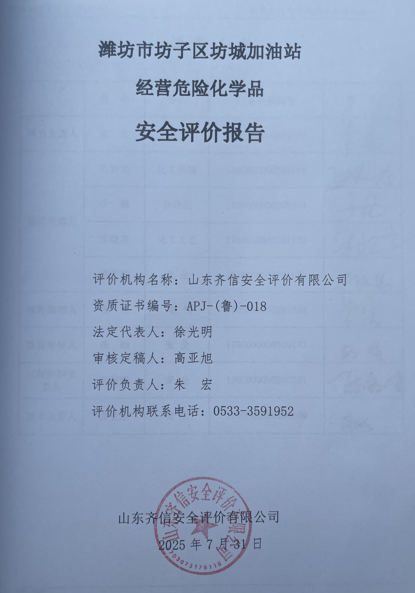 潍坊市坊子区坊城加油站成立于2004年11月12日,注册地位于潍坊市坊子区工矿街北首,投资人尚金帅。经营范围包括零售:零售:汽油、柴油(有效期限以许可证为准)、润滑油;食品销售。(依法须经批准的项目,经相关部门批准后方可开展经营活动)。 该加油站现有4台储罐,其中汽油罐3台,柴油罐1台 ,具体为92#汽油双层罐2个,容积均为25m3,95#汽油双层罐1个,容积25m3,柴油双层罐1个,容积25m3,柴油罐随季节调整品种。柴油折半计入,该站储罐总容积为87.5m?,根据《汽车加油加气加氢站技术标准》(GB50156-2021)第3.0.9条之规定,为三级加油站。 该加油站于2022年8月19日换发了危险化学品经营许可证,证书编号为:鲁潍危化经[2022] 004015号,有效期至2025年8月18日;于2025年5月7日换发了成品油零售经营许可证(证书编号:鲁油零售证书第3707043016号),有效期至2030年5月7日。 依据《中华人民共和国安全生产法》(中华人民共和国主席令[2002]第70号,根据2021年6月10日中华人民共和国第十三届全国人民代表大会常务委员会第二十九次会议《全国人民代表大会常务委员会关于修改〈中华人民共和国安全生产法〉的决定》修正)、《危险化学品安全管理条例》(国务院令第591号,根据国务院令第645号修订)、《危险化学品经营许可证管理办法》(国家安全生产监督管理总局令第55号,根据安监总局令第79号修订)、《山东省应急管理厅关于印发《山东省危险化学品经营许可证实施细则》的通知》(鲁应急发〔2025〕4号)的要求,危险化学品经营许可证换发需进行安全评价,因此,潍坊市坊子区坊城加油站委托山东oety欧亿体育安全评价有限公司进行经营危险化学品安全评价。 接受委托后,山东oety欧亿体育安全评价有限公司成立评价组,在进行资料与标准收集、现场调研、项目资料分析、危险与有害因素分析的基础上,依据《安全评价通则》(AQ8001-2007)、《山东省加油站安全评价导则》(鲁安监发〔2006〕114号),通过对该加油站安全管理、站址选择及总平面布置、加油工艺及设施、其他设施等方面的审查,选择相应的评价方法对其危险、有害因素进行辨识和评价,编写完成了《潍坊市坊子区坊城加油站安全评价报告》。 |