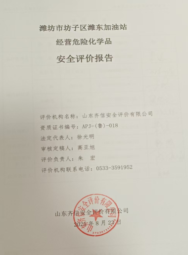 潍坊市坊子区潍东加油站成立于2013年12月18日,注册地位于潍坊市坊子区潍胶路与眉南路交汇处西侧路南,投资人牟建国。经营范围零售:汽油、柴油(有效期限以许可证为准);零售:润滑油。(依法须经批准项目,经相关部门批准后方可开展经营活动)。 该加油站现有5台储罐,其中汽油罐3台,柴油罐2台 ,具体为92#汽油双层罐2台,容积均为30m3,95#汽油双层罐1台,容积30m3,柴油双层罐2台,容积均为30m3,柴油罐随季节调整品种。柴油折半计入,该站储罐总容积为120m?,根据《汽车加油加气加氢站技术标准》(GB50156-2021)第3.0.9条之规定,为二级加油站。 该加油站于2022年11月24日换发了危险化学品经营许可证,证书编号为:鲁潍危化经[2022] 004018号,有效期至2025年11月23日;于2023年9月4日换发了成品油零售经营许可证(证书编号:鲁油零售证书第3707043056号),有效期至2028年9月4日。 依据《中华人民共和国安全生产法》(中华人民共和国主席令[2002]第70号,根据2021年6月10日中华人民共和国第十三届全国人民代表大会常务委员会第二十九次会议《全国人民代表大会常务委员会关于修改〈中华人民共和国安全生产法〉的决定》修正)、《危险化学品安全管理条例》(国务院令第591号,根据国务院令第645号修订)、《危险化学品经营许可证管理办法》(国家安全生产监督管理总局令第55号,根据安监总局令第79号修订)、《山东省应急管理厅关于印发《山东省危险化学品经营许可证实施细则》的通知》(鲁应急发〔2025〕4号)的要求,危险化学品经营许可证换发需进行安全评价,因此,潍坊市坊子区潍东加油站委托山东oety欧亿体育安全评价有限公司进行经营危险化学品安全评价。 接受委托后,山东oety欧亿体育安全评价有限公司成立评价组,在进行资料与标准收集、现场调研、项目资料分析、危险与有害因素分析的基础上,依据《安全评价通则》(AQ8001-2007)、《山东省加油站安全评价导则》(鲁安监发〔2006〕114号),通过对该加油站安全管理、站址选择及总平面布置、加油工艺及设施、其他设施等方面的审查,选择相应的评价方法对其危险、有害因素进行辨识和评价,编写完成了《潍坊市坊子区潍东加油站安全评价报告》。 |